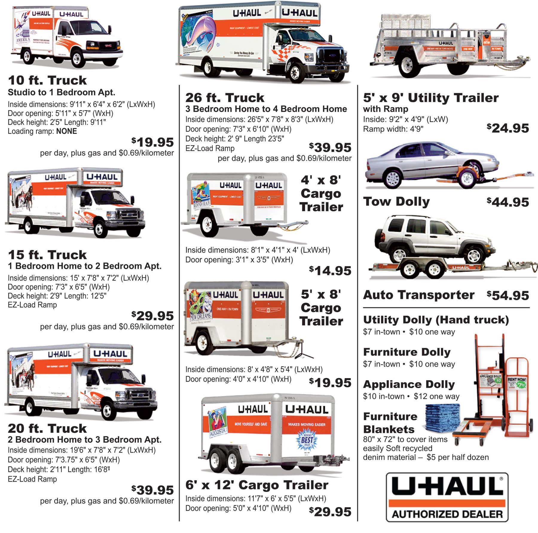 These towing rentals are separate from the truck rental and come with their own daily rates. Factor in their cost and the additional fuel consumption they will cause.